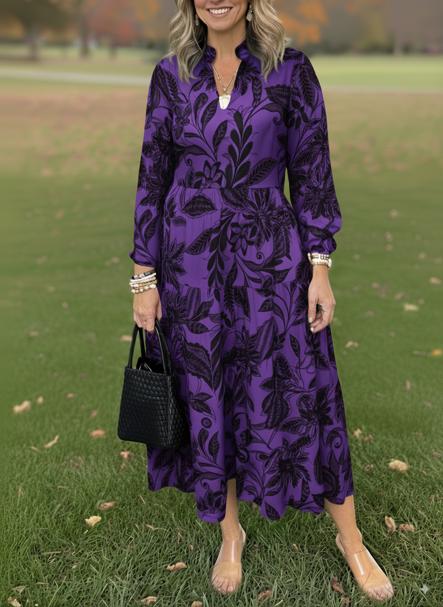 The v neck floral vintage print dress is a versatile and stylish addition to any wardrobe. With its unique design elements and comfortable fit, it is perfect for both casual outings and more formal occasions. Embrace the effortless elegance of this dress and let it become your go-to piece for a variety of events.