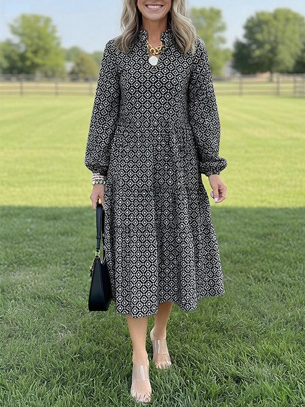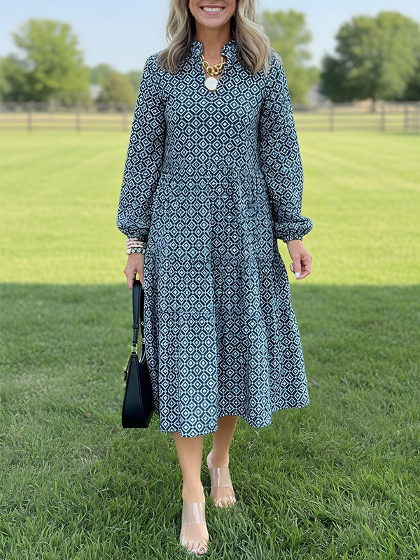 The v neck vintage printed dress is a versatile and stylish addition to any wardrobe. With its unique design elements and comfortable fit, it is perfect for both casual outings and more formal occasions. Embrace the effortless elegance of this dress and let it become your go-to piece for a variety of events.